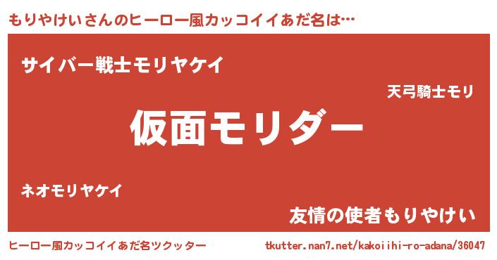 | 男性向けラノベタイトル風あだ名 | 『転生したらもりやけいだった件』 |