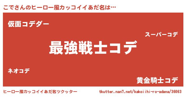 こでさんのヒーロー風カッコイイあだ名をツクッター!