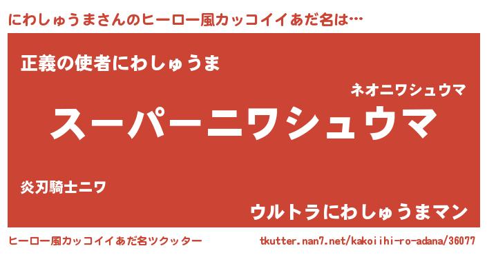 | 男性向けラノベタイトル風あだ名 | 『にわしゅうまの憂鬱』 |