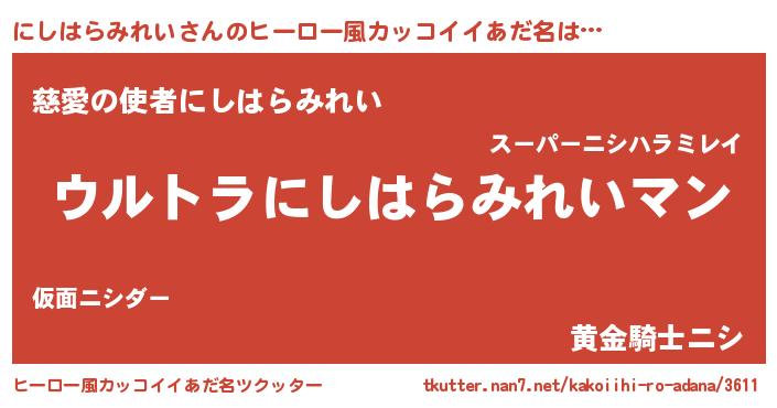 | 伝説のあだ名 | 『秘められし忍者にしはらみれい』 |
