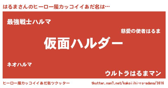 | 男性向けラノベタイトル風あだ名 | 『この素晴らしい世界にはるまを!』 |