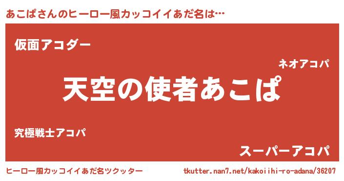 | 男性向けラノベタイトル風あだ名 | 『うちのあこぱが世界を掌握している!』 |