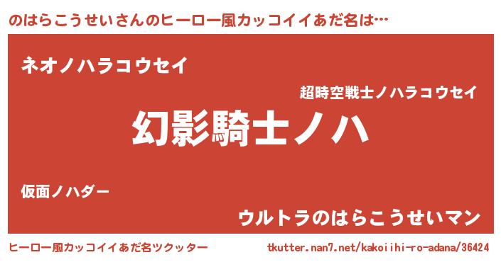 | 男性向けラノベタイトル風あだ名 | 『のはらこうせいの嫁は女の子じゃないと思った?』 |
