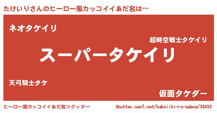 | 男性向けラノベタイトル風あだ名 | 『たけいりの憂鬱』『タケイリスレイヤー』 |