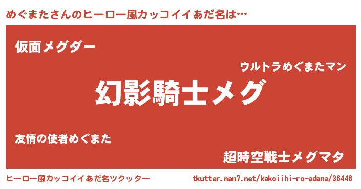 | 男性向けラノベタイトル風あだ名 | 『めぐまたの嫁は女の子じゃないと思った?』 |