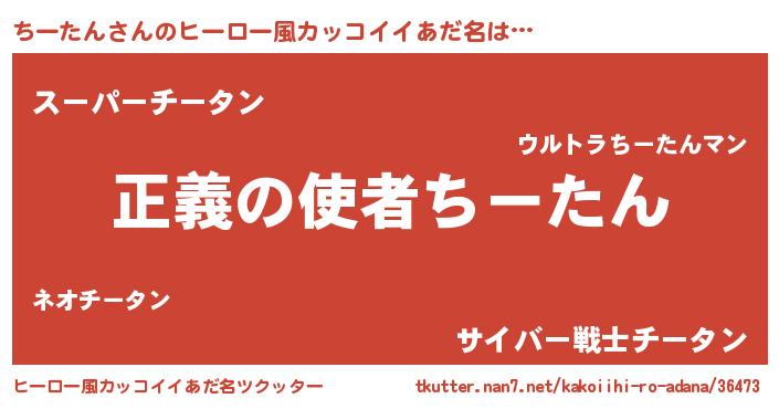 | 男性向けラノベタイトル風あだ名 | 『おまえをオタクにしてやるから、俺をちーたんにしてくれ! 』 |