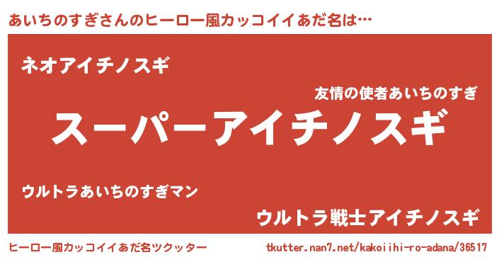 | 男性向けラノベタイトル風あだ名 | 『あいちのすぎ~年齢イコール彼女いない歴の魔法使い~』 |