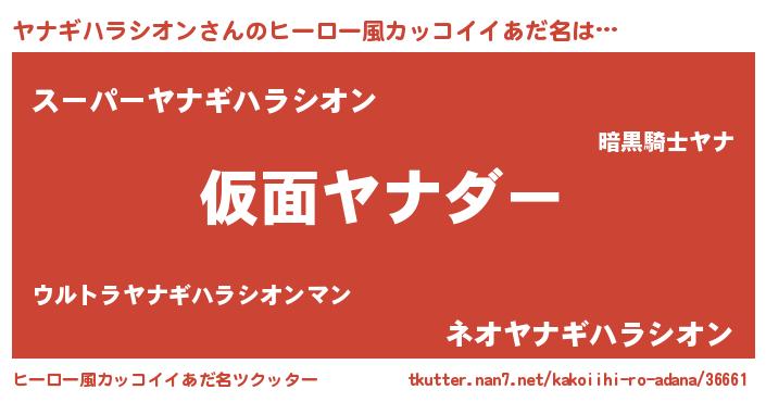 | ヘコむあだ名 | 『ヤナふぇ~』『ヤナギハラシオン(苦笑)』 |