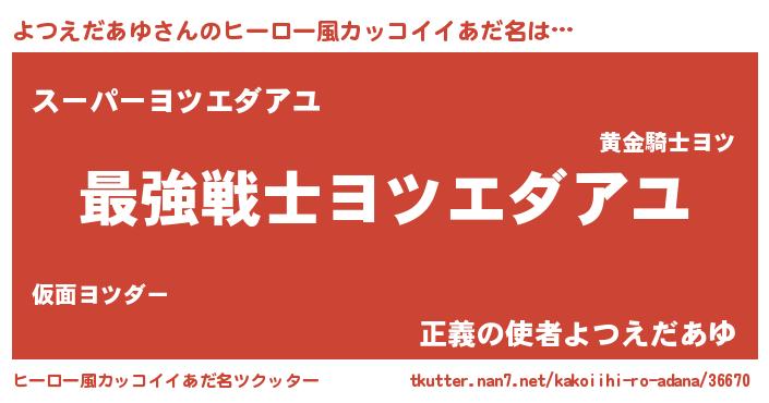 | 女子向けラノベタイトル風あだ名 | 『よつえだあゆの玉の輿計画!』 |