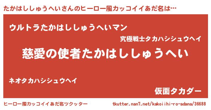 | 男性向けラノベタイトル風あだ名 | 『たかはししゅうへい~年齢イコール彼女いない歴の魔法使い~』 |