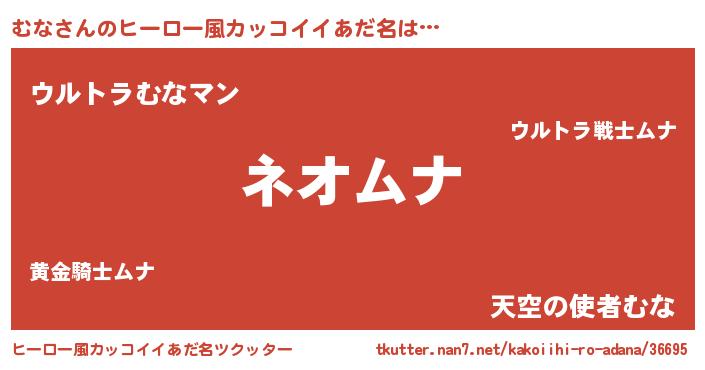 | 胡散臭い通販商品みたいなあだ名 | 『絶対に幸福をもたらす水素水…その名も「むな」』 |
