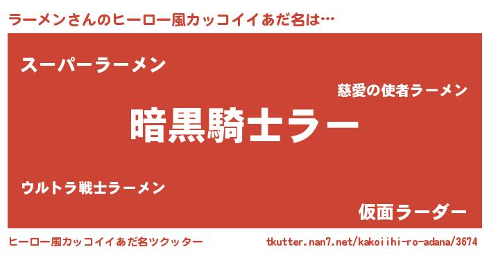 | 女子向けラノベタイトル風あだ名 | 『ラーメンは平凡を望む』 |