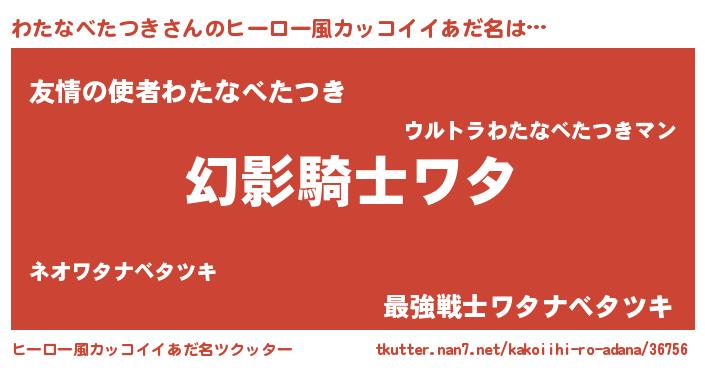 | ポケモン風あだ名 | 『ヒワタナベタツキ』『ワックウザ』 |