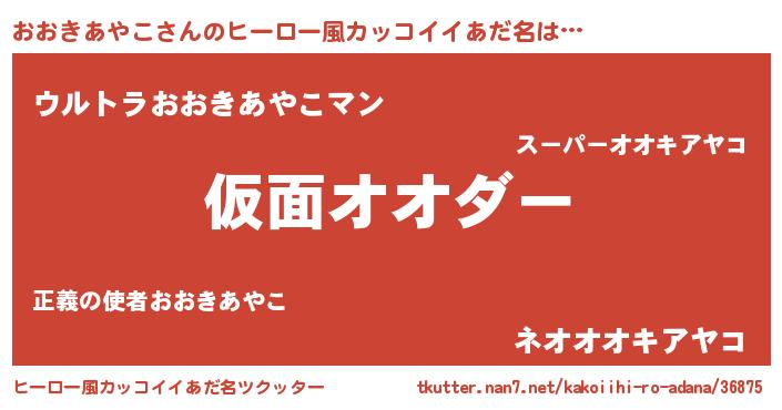 | 男性向けラノベタイトル風あだ名 | 『おおきあやこ~年齢イコール彼女いない歴の魔法使い~』 |
