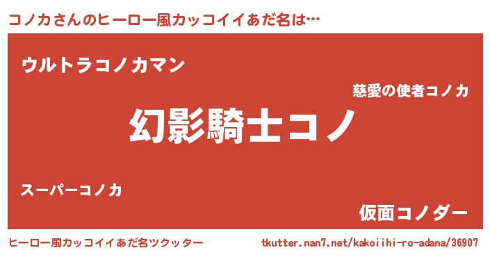 | 男性向けラノベタイトル風あだ名 | 『コノカの嫁は女の子じゃないと思った?』 |