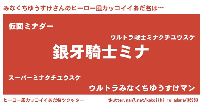| 欧米人風あだ名 | 『みなくちゆうすけ・ステッグマイヤー』 |