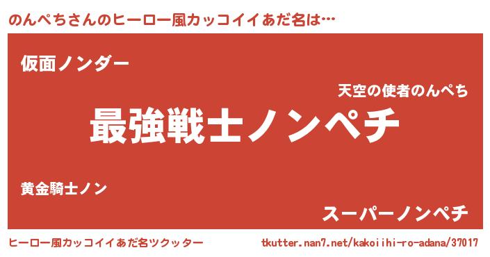 | 男性向けラノベタイトル風あだ名 | 『Re:のんぺちから始める異世界生活』 |