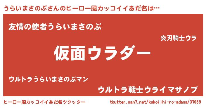 男性向けラノベタイトル風あだ名 | 『この素晴らしい世界にうらいまさのぶを!』 |