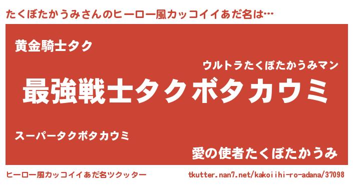 | 男性向けラノベタイトル風あだ名 | 『Re:たくぼたかうみから始める異世界生活』 |