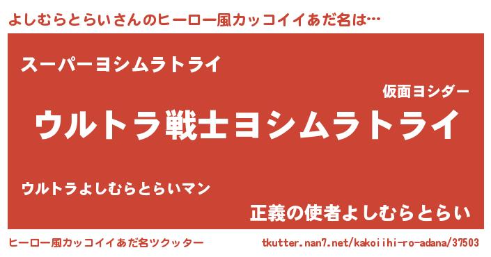 | 男性向けラノベタイトル風あだ名 | 『魔法科高校のよしむらとらい』 |
