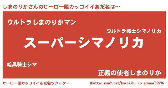 | ファンタジー風あだ名 | 『シマフェル』『エターナルシマノリカー』 |