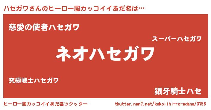 | 女子向けラノベタイトル風あだ名 | 『異世界で失敗しない100のハセガワ』 |