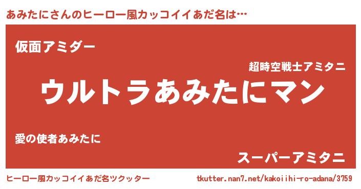 | 男性向けラノベタイトル風あだ名 | 『転生したらあみたにだった件』 |