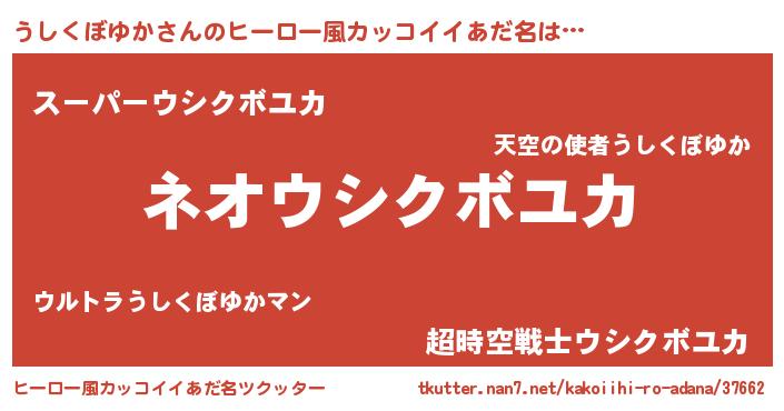 | 男性向けラノベタイトル風あだ名 | 『うしくぼゆかという概念が存在しない退屈な世界 』 |