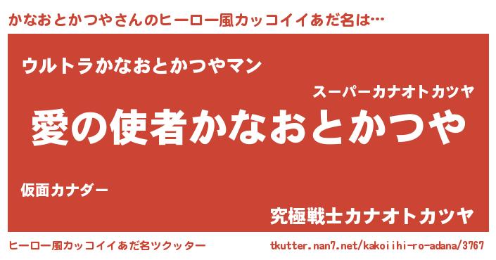 | 男性向けラノベタイトル風あだ名 | 『おまえをオタクにしてやるから、俺をかなおとかつやにしてくれ! 』 |