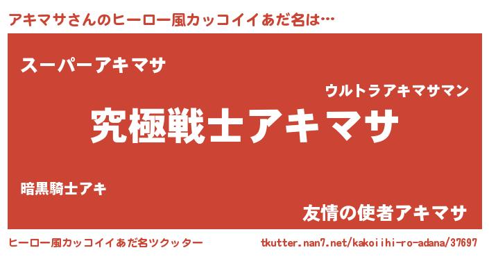 | 男性向けラノベタイトル風あだ名 | 『Re:アキマサから始める異世界生活』 |