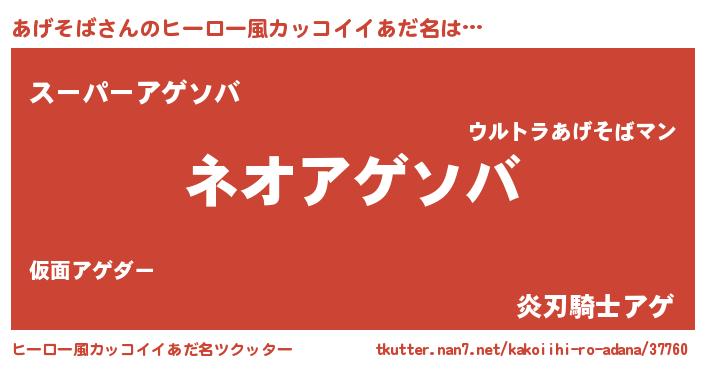 | ヘコむあだ名 | 『あげそば(苦笑)』『あげにー』 |