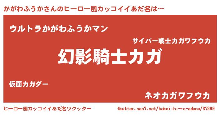 | 男性向けラノベタイトル風あだ名 | 『かがわふうか~年齢イコール彼女いない歴の魔法使い~』 |
