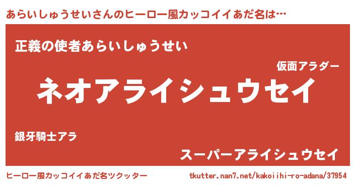 | 男性向けラノベタイトル風あだ名 | 『あらいしゅうせいに滅ぼされるだけの簡単なお仕事です』 |