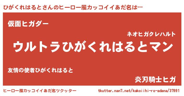| 男性向けラノベタイトル風あだ名 | 『ひがくれはるとに滅ぼされるだけの簡単なお仕事です』 |