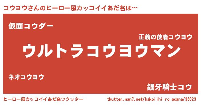 | 女子向けラノベタイトル風あだ名 | 『コウヨウの雑貨屋さん』 |