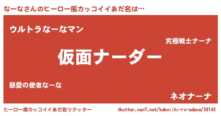 | 男性向けラノベタイトル風あだ名 | 『この素晴らしい世界になーなを!』 |