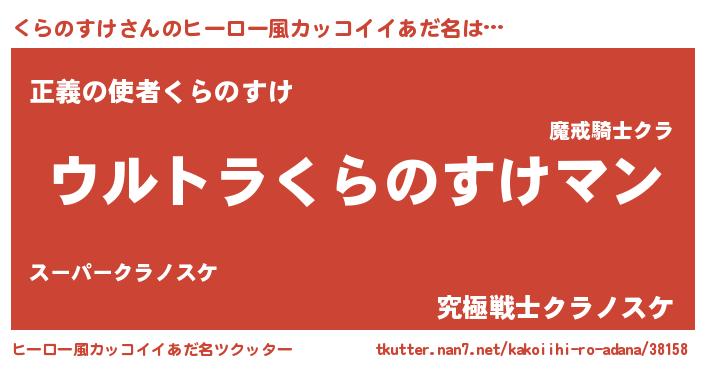 | 男性向けラノベタイトル風あだ名 | 『転生したらくらのすけだった件』 |