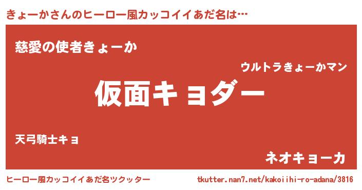 | 意味不明あだ名 | 『住所不定無職きょーか(11歳)』 |