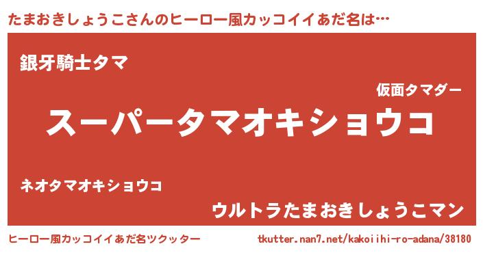 | 男性向けラノベタイトル風あだ名 | 『タマオキショウコアートオンライン』 |