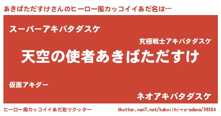 | 男性向けラノベタイトル風あだ名 | 『ノーゲーム・ノーアキバタダスケ』 |