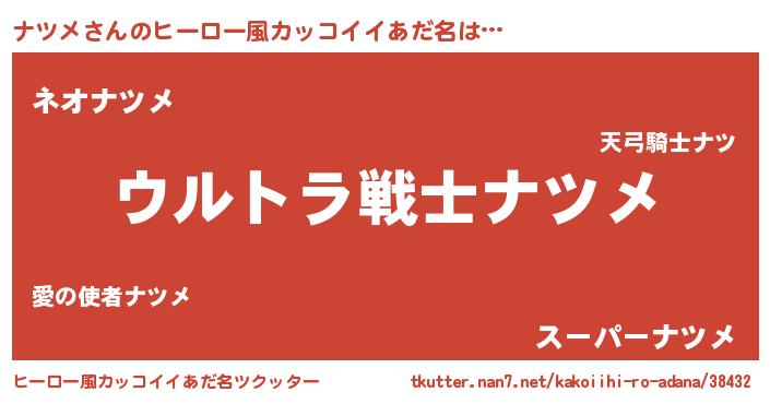| 女子向けラノベタイトル風あだ名 | 『ナツメなんてお断りですっ。』 |