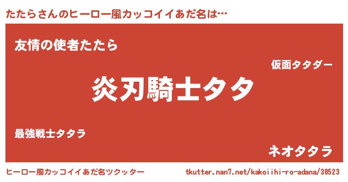 | 意味不明あだ名 | 『とにかく怪しいたたら』『自称たたら』 |