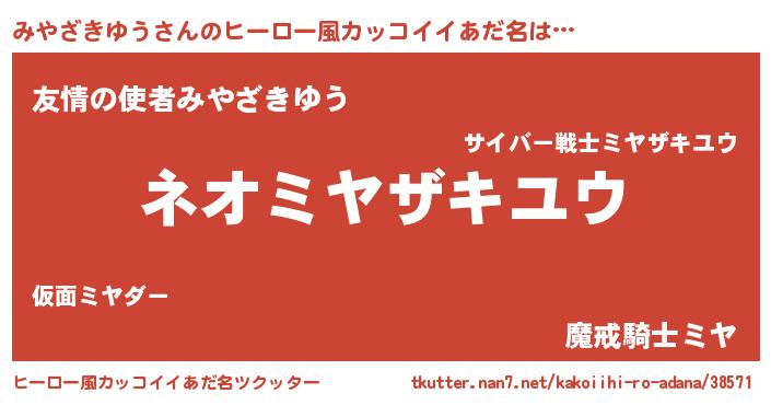 | ヘコむあだ名 | 『みやざきゆう(苦笑)』『みやぷりん』 |