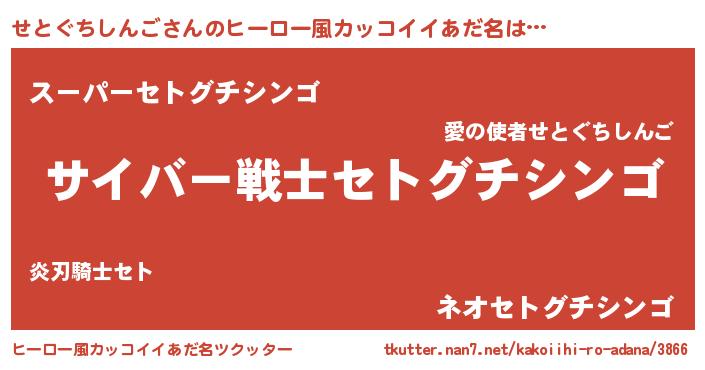 | 意味不明あだ名 | 『自称せとぐちしんご』 |
