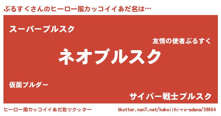 | 男性向けラノベタイトル風あだ名 | 『ぶるすくに滅ぼされるだけの簡単なお仕事です』 |