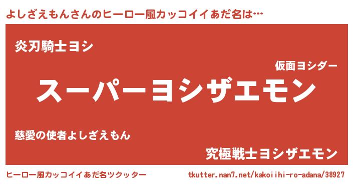 | 男性向けラノベタイトル風あだ名 | 『よしざえもんの憂鬱』 |