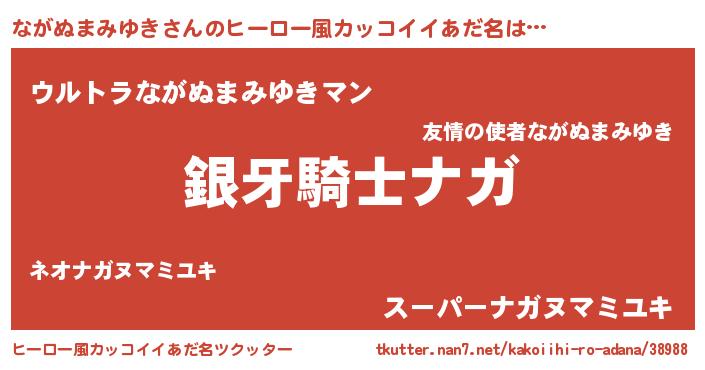 | 男性向けラノベタイトル風あだ名 | 『ダンジョンにながぬまみゆきを求めるのは間違っているだろうか』 |