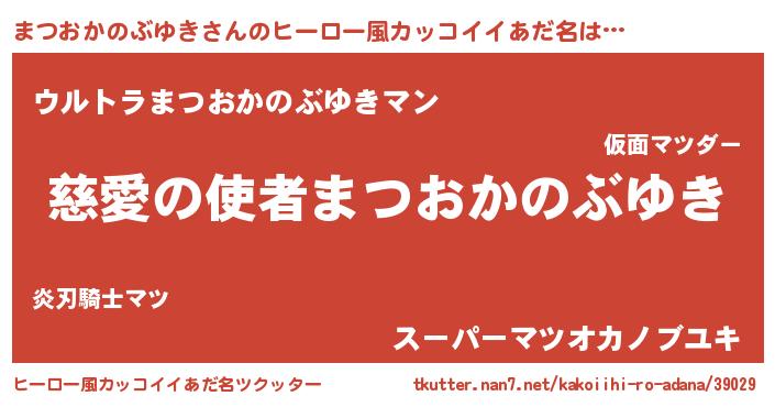 | 男性向けラノベタイトル風あだ名 | 『ノーゲーム・ノーマツオカノブユキ』 |