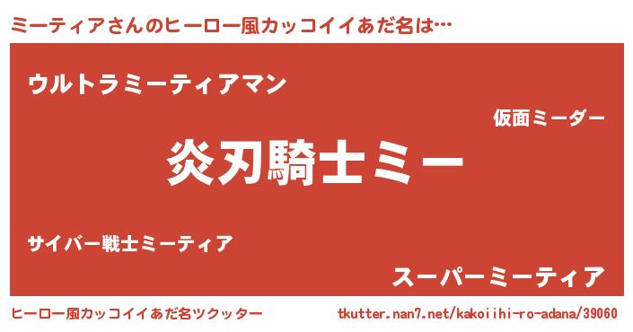 | 男性向けラノベタイトル風あだ名 | 『ミーティアの嫁は女の子じゃないと思った?』 |
