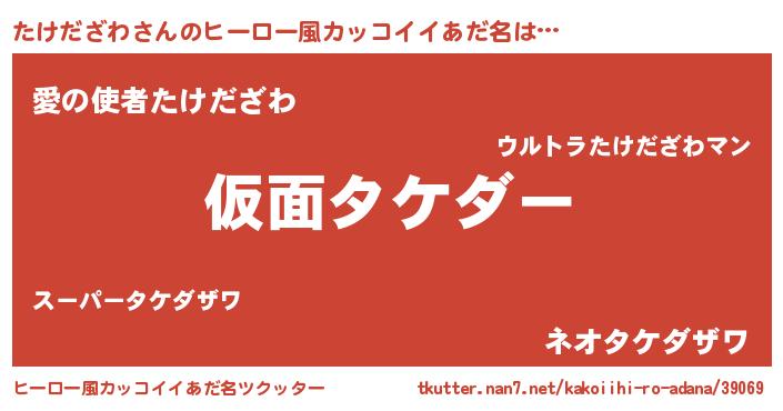 | 男性向けラノベタイトル風あだ名 | 『タケダザワスレイヤー』 |